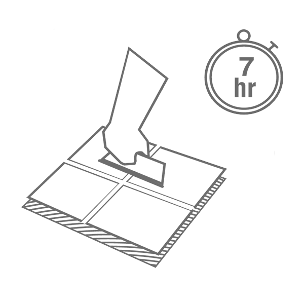 Apply 4mm layer for walls and 6mm layer for floors using a notched trowel in single direction. Apply a thin layer of tile adhesive on back of tile for internal and external wall tiling.