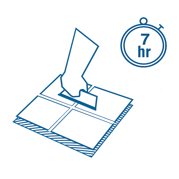 Apply 4mm layer for walls and 6mm layer for floors using a notched trowel in single direction. Apply a thin layer of tile adhesive on back of tile for internal and external wall tiling.