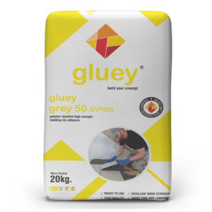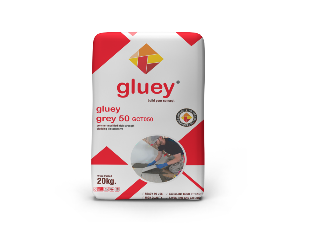 gluey grey 50 GCT050 is a Grey Cement base Tile Adhesive. Recommended for fixing Ceramic tiles and cement tiles for all Floor/wall Tile fixing applications on concrete substrate.